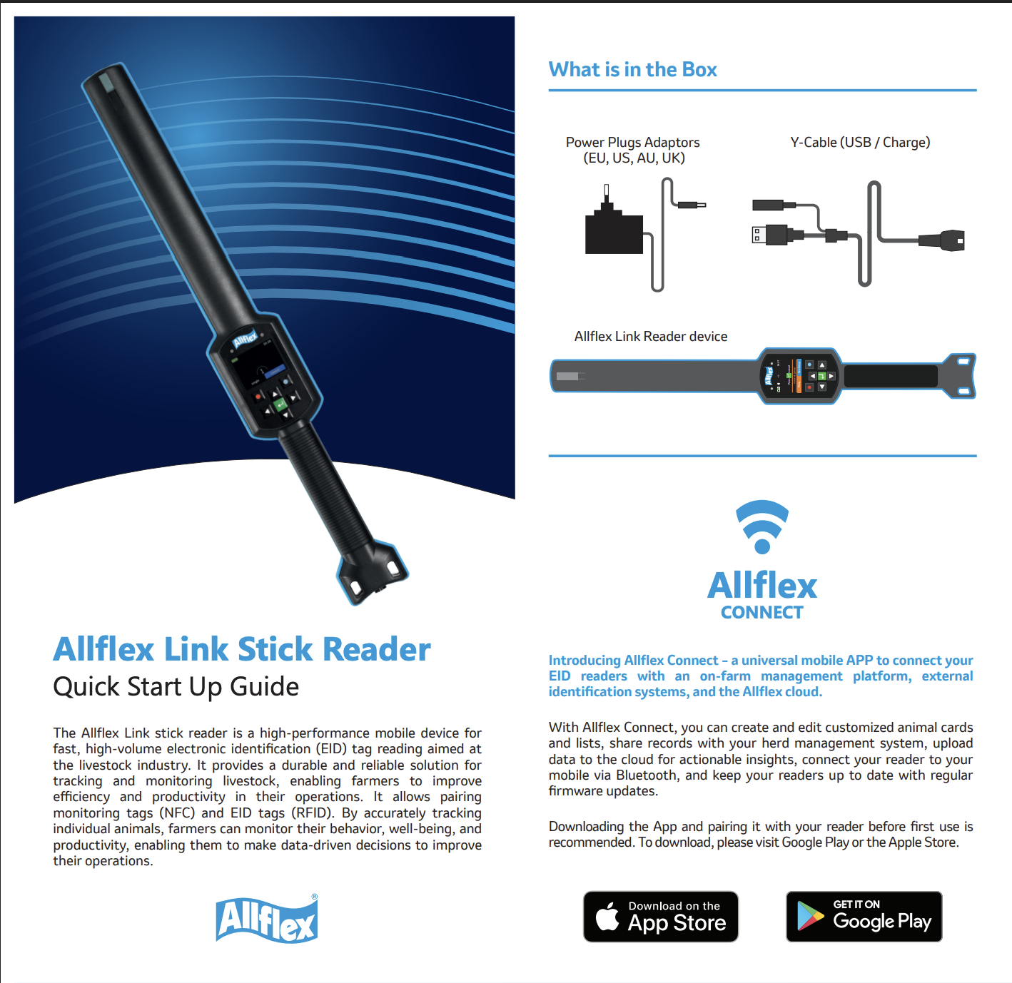 Allflex Link Stick Reader Allflex Link User Guide Download guide Allflex Link Quick User Guide Download guide Warranty terms Link Stick Reader Download guide Allflex Connect for Android Install Software Allflex Connect for iOS Install Software Allflex Link Unboxing Video Watch Video Allflex Link Datasheet Download Document Allflex Link Flyer Download Document SenseLink Software INSTALL SOFTWARE
