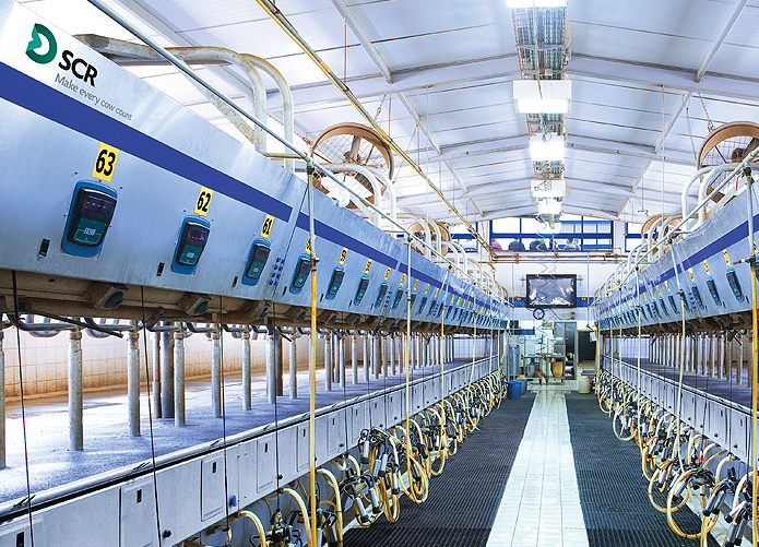 identification and Allflex Data Flow II System for milking and herd management, with in-pit message display screen.