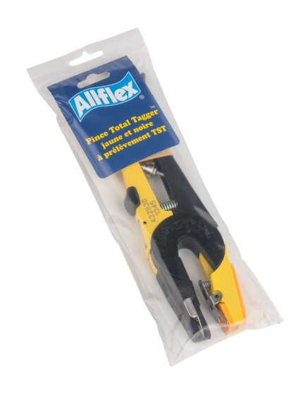 Kolczykownica TST to uniwersalne narzędzie do zakładania kolczyków TST w uchu zwierzęcia celem jednoczesnej identyfikacji oraz poboru wycinka tkanki.